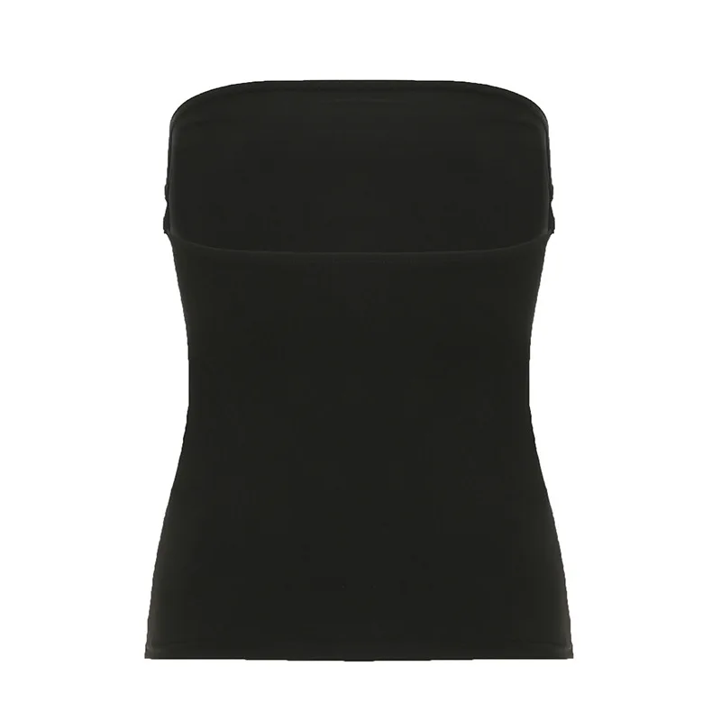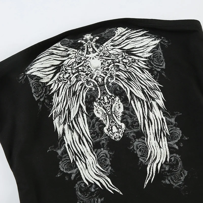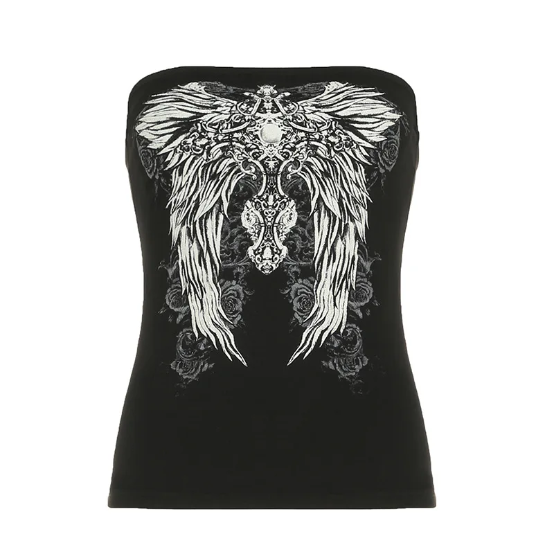 Gothic Print Black Strapless Tube Top Women Skinny Cropped Summer Casual Chic Graphic Tee Y2K Streetwear Basic Vest